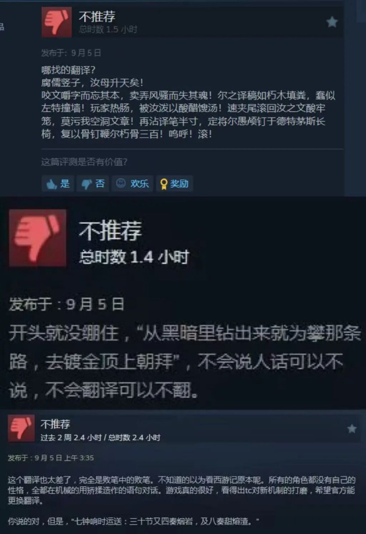 steam玩家因简中翻译而差评
