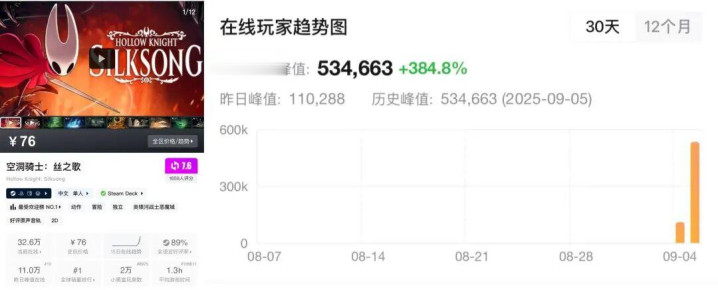 当然,这种玩梗基本来源于玩家们对《空洞骑士》的高度认可。上线前,「丝之歌」的定档就倒逼多家游戏厂商调整宣发节奏,避其锋芒。上线后,「丝之歌」更是实打实让大家感受到了自己的热度有多高——游戏没有开启预购,所以大家都是现买现玩,直接导致昨天Steam也因为大量玩家涌入下单,服务器原地崩溃。同理,Switch、Xbox等主机平台服务器也未能幸免,不少玩家同样卡在了付款界面。
