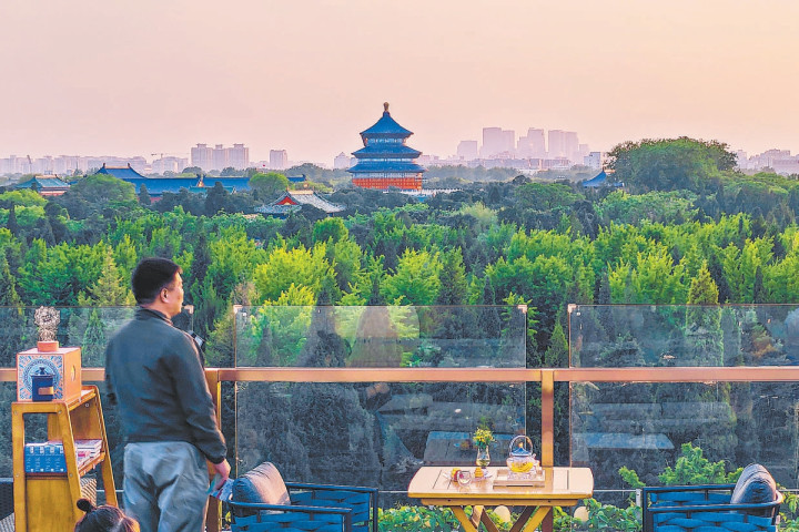 经过整理,一批屋顶露台敞开怀抱,重新焕发了生机。700多岁的宏恩观在活化利用中,特意开辟出200平方米的露台餐厅,吃着西餐、与钟楼对望,食客们纷至沓来;在白塔寺周边,露台几乎成为餐厅、咖啡厅的“标配”,各式白塔甜点、白塔咖啡如雨后春笋,无数游客登临露台,捧着“小白塔”拍真白塔;站在紫龙花园酒店七层的露台上,四面无遮挡的露台视野开阔,CBD、景山万春亭、奥森玲珑塔尽在眼中,历史与现代在此奇妙交融……