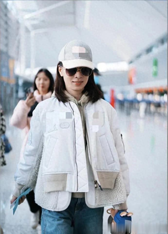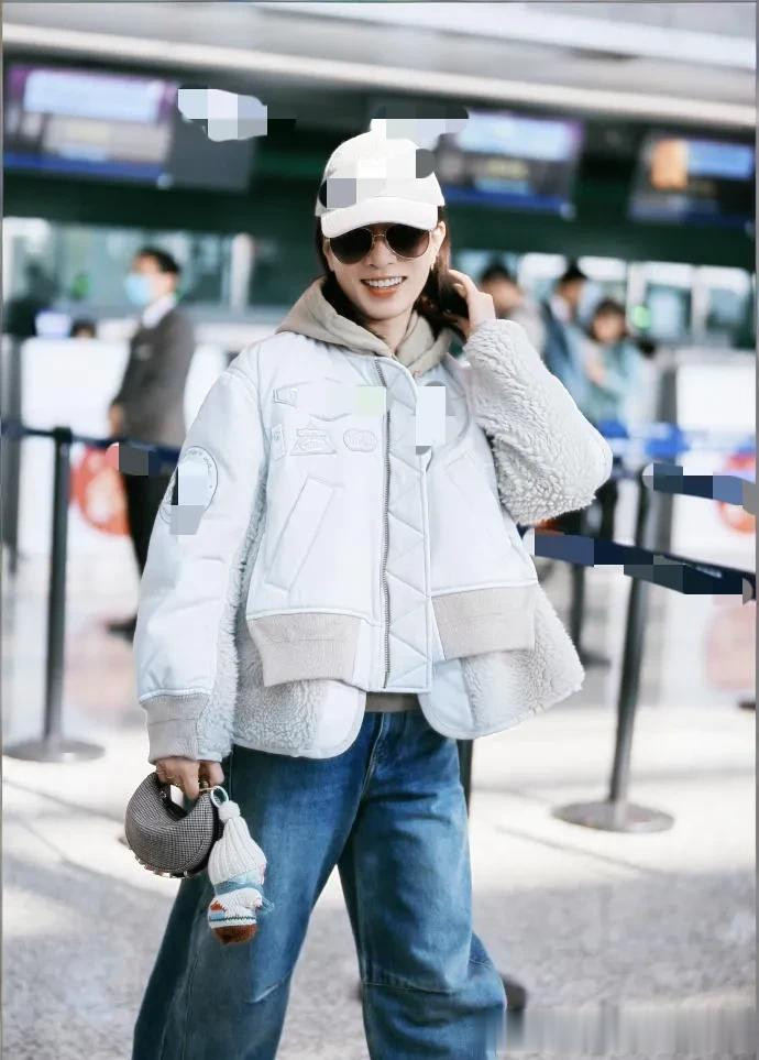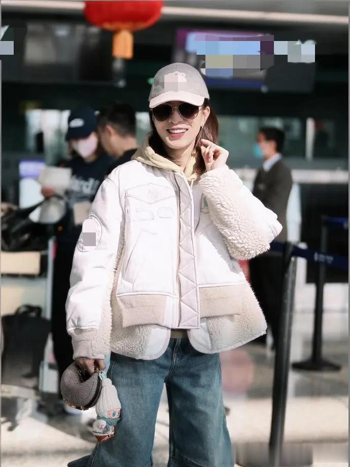 佘诗曼越来越会穿! 假两件棉服+连帽卫衣+牛仔裤, 时髦又减龄!