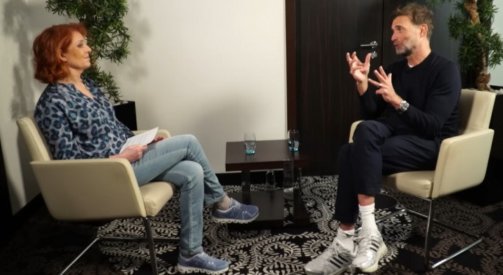主持人:我很高兴能与这位最著名、最受欢迎的德国足球教练交谈。他曾是国际足联年度最佳教练,是一位真正的冠军缔造者。独一无二的尤尔根·克洛普。你好,尤尔根,见到你真高兴。