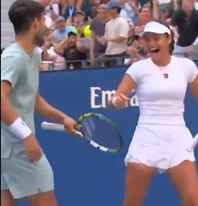 北京时间8月20日,2025美网混双首轮比赛中,备受关注的阿尔卡拉斯/拉杜卡努组合,虽然未能战胜佩古拉/德雷珀组合,但在比赛中,阿尔卡拉斯打出了极为精彩的一球,制造了当天比赛的高光时刻: