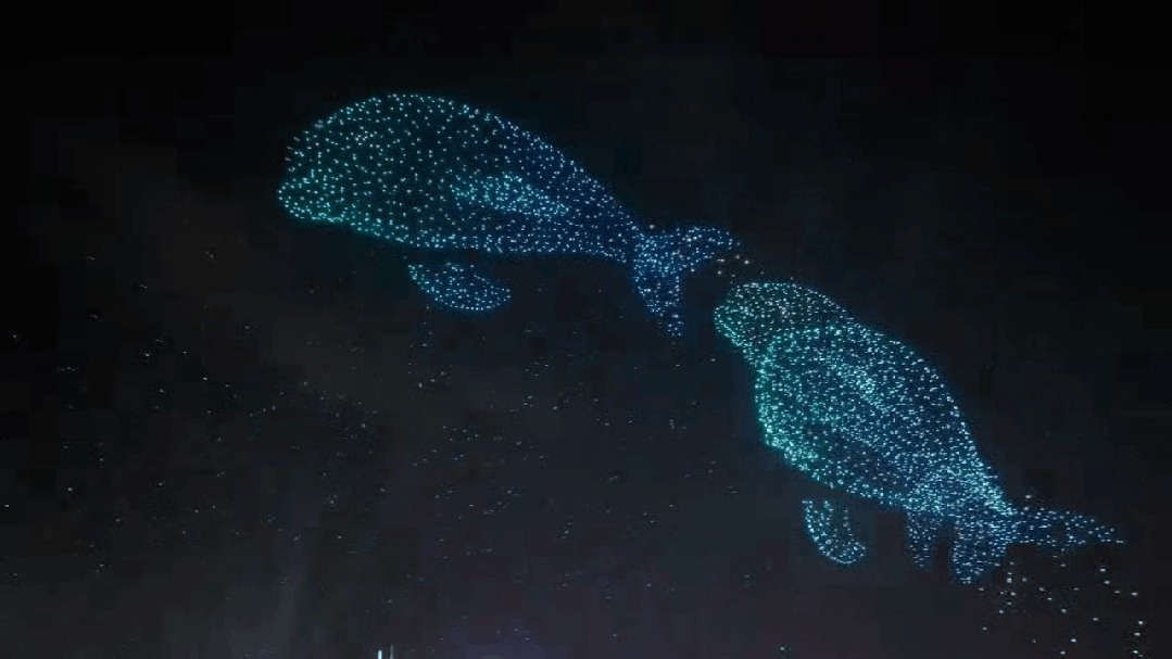 长江边的人潮挤得像下饺子,4000 架无人机组成的 "空中天团" 在黑夜里一会儿是江豚摆着尾巴从水面 "游" 过,一会儿又化作牡丹 "砰" 地绽开,每一帧都让现场观众忍不住惊呼。