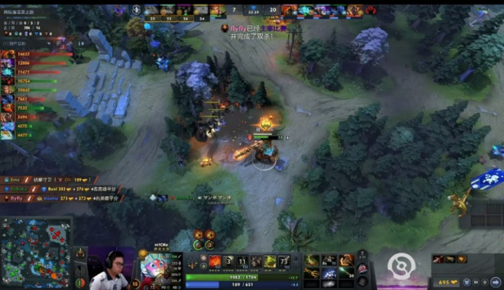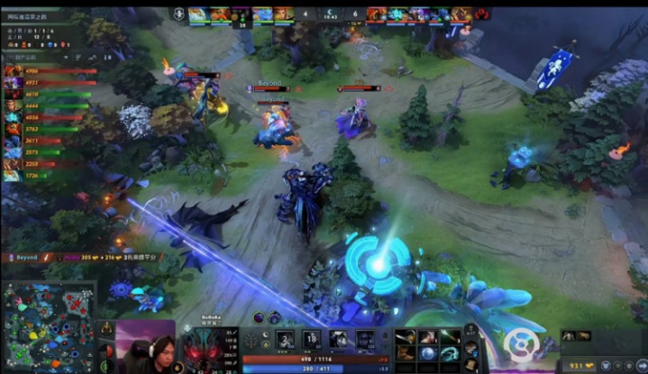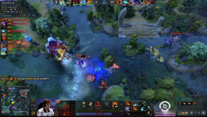 [11分钟]先是Beyond黑暗贤者带着双辅助入侵野区击杀了Nisha影魔,后是YB中路集结,boboka夜魔开大招配合Emo蓝猫入场,Oli沉默接大招保护蓝猫,全员配合击杀Boxi帕克加SaberLight玛尔斯。