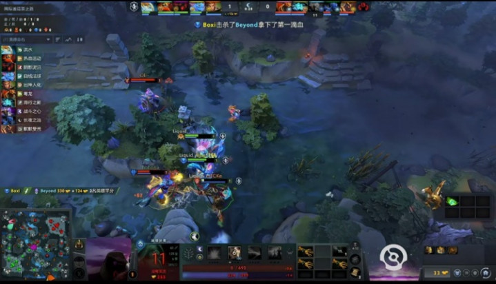 [0分钟]双方抢符激情肉搏,Boxi帕克击杀Beyond黑暗贤者获得一血,Liquid杀人还不走,boboka夜魔硬抠击杀mICKe大圣,双方打了一波2换2。