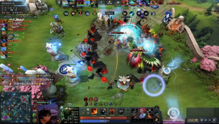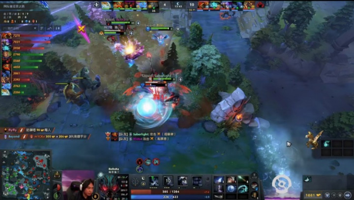 [31分钟]YB推最后一路,Liquid出来接团,放的技能没能秒了龙骑或者蓝猫,反而是Beyond黑贤拉了一个三人的真空拉墙,让Liquid溃败。最后mICKe大圣躲树林被Emo蓝猫飞过来发现,flyfly龙骑士输出击杀后,Liquid打出GG。