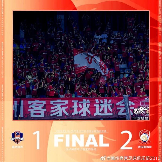 9月20日晚,中超第25轮,梅州客家坐镇主场五华县惠堂体育场迎战青岛西海岸队,虽然球员还是相当努力,但依然无法拿到分数,最终1比2不敌青岛西海岸,梅州客家已经在积分榜跌至最后一位,保级形势越来越严峻。